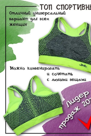 Топ спортивный со стильной расцветкой и уникальным кроем. Уникальный крой топика с большим вырезом на груди и открытыми плечами обеспечит полную свободу движений. Топ со съемными чашками обеспечит идеальную форму и не будет просвечивать. В нем ты будешь чувствовать себя уверенной на любой тренировке! Топик обеспечивает среднюю поддержку груди. Топ спортивный женский подходит не только для спорта: бег/ходьба, фитнес и тренажеры, йога/пилатес, танцы/гимнастика, кроссфит и др., но также и для прогулок, велосипеда и повседневных образов. Благодаря уникальной расцветке его легко сочетать с черными и цветными леггинсами. Топ женский летний также подойдет, если вас интересует пляжная мода - открытые плечи загорают на солнце, и как одежда для невысоких, для женщин с большой или маленькой грудью, для активного образа жизни. Топ женский выполнен из тянущейся ткани, которая эффективно отводит влагу во время занятий. Спортивный лифчик топ женский обладает комфортными лямками и мягкой резинкой. Твой топик не слетит во время занятий. Спортивный бюстгальтер - незаменимый элемент одежды как топы и футболки для спорта.