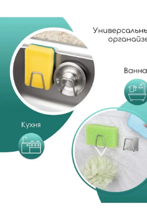 Порядок на кухне – это легко. Губки для мытья посуды больше не будут валяться по всей раковине. Раковина для кухни тоже может служить образцом чистоты и порядка. Меламиновая губка для посуды долго сохнет и оставляет следы - больше это не проблема. Кухонный кран станет свободен от тряпочек и губок и перестанет лишний раз ржаветь и собирать известковый налет. Универсальный кухонный держатель крючок будет незаменим в вашем доме. ержатель можно использовать для кухонного инвентаря, как держатель подставка для крышек кастрюль, подставка для кухонных приборов, металлической губки (железная), разделочных досок и он лаконично впишется в любой интерьер. Это своего рода вешалка для кухонных принадлежностей 21 века.