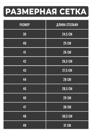 Размеры 39 40 41 42 43 44 45 46 47 48 49