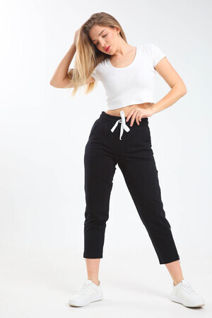 Женские укороченные брюки, пояс на резинке с регулируемым шнурком, два боковых кармана, зауженный низ на молнии. Сделаны из высококачественного трикотажного хлопка, легкие и приятные к телу, не сковывают движения. Идеально подходят для любого случая, для спорта, для прогулок, для дома.
