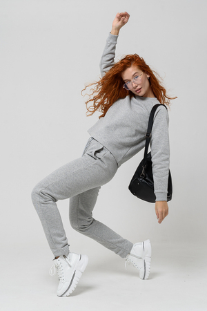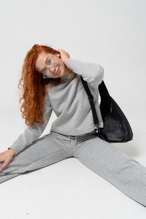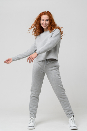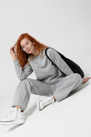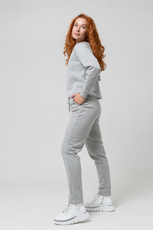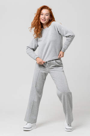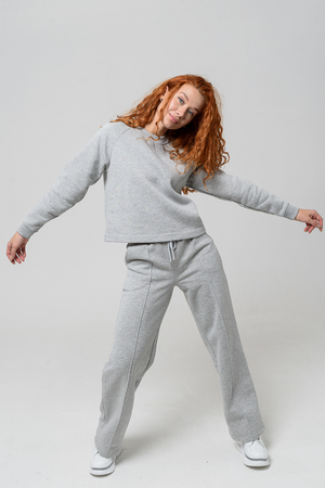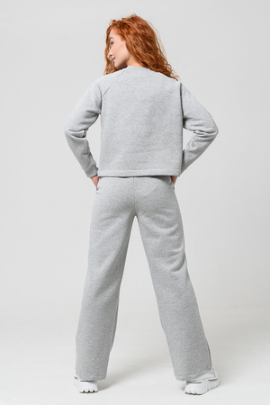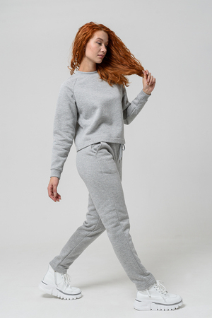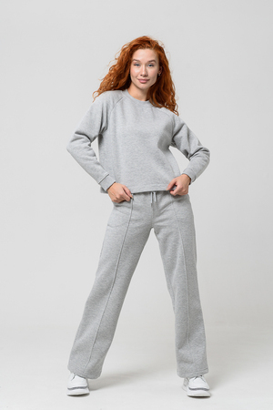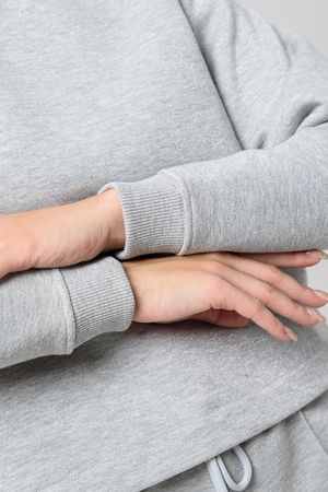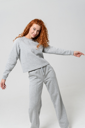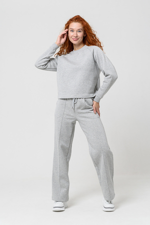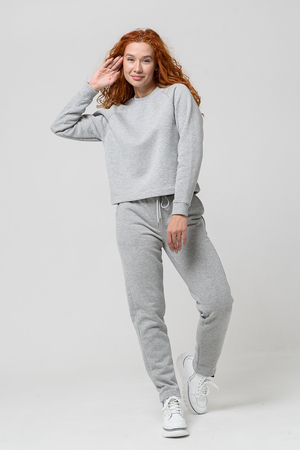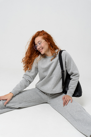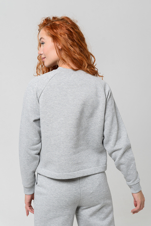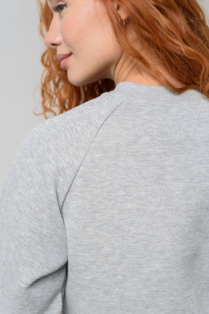 Толстовка прямая, укороченная, с округлой горловиной. Рукав реглан, длинный. Горловина и манжеты рукавов выполнены из эластичного полотна.