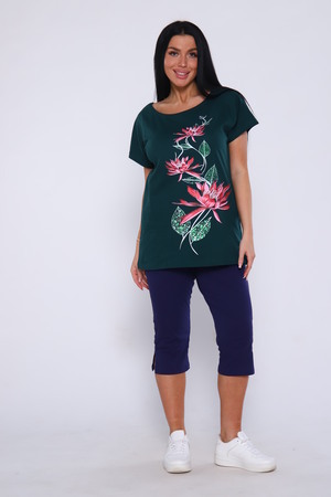 Костюм двойка для домашнего отдыха и сна из 100% хлопка. Футболка свободного кроя, удлиненная, с круглым вырезом горловины и коротким рукавом. Бриджи классической длины, прямого кроя. Мягкий и приятный к телу материал, обладающий высоким качеством, подарит вам настоящий уют на каждый день. Модный спортивный, лаконичный, мягкий, домашний костюм со штанами можно носить дома, на даче или в роддоме, а также использовать комплект как пижамный. Наш трикотажный костюм подойдет любой моднице. Такую домашнюю одежду для женщин можно использовать для йоги, активного отдыха, походов и прогулок весной и летом. Домашний костюм женский с бриджами с интересным рисунком соответствует моде и отлично подходит для повседневной носки.