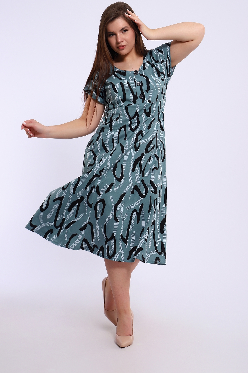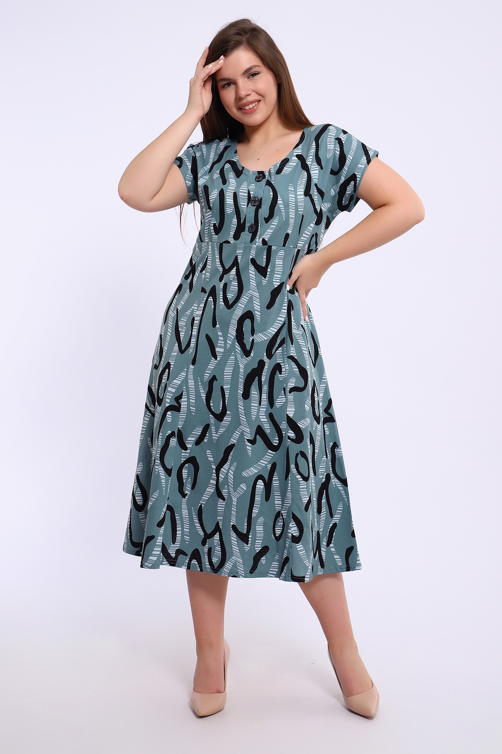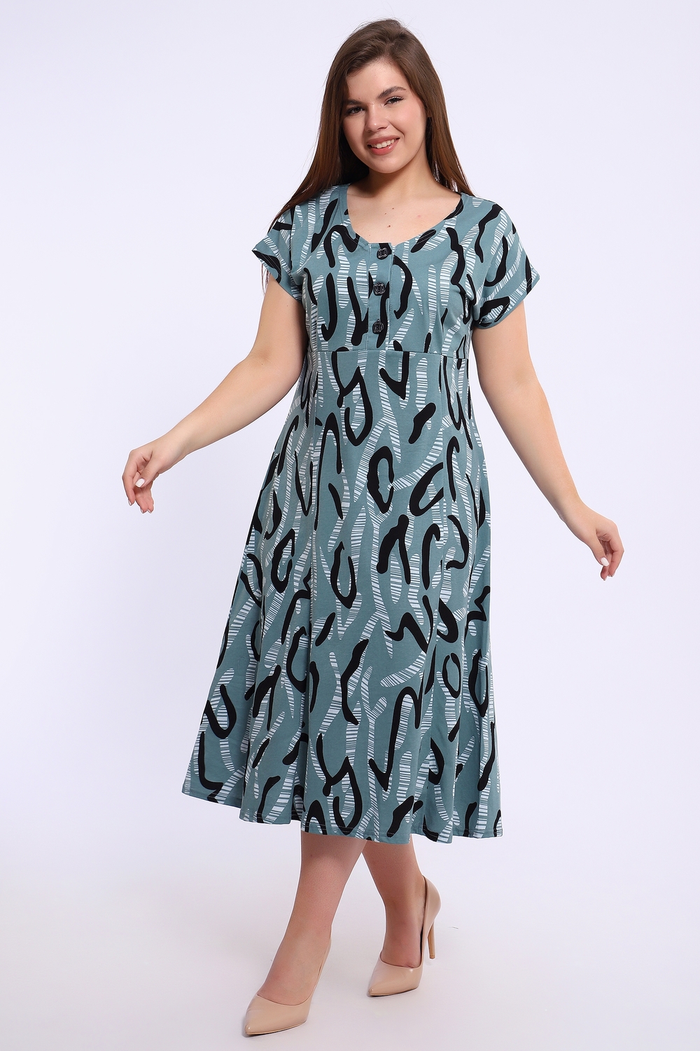 Платье женское со спущенным рукавом из кулирки 100% хлопок, с подрезом, планка на пуговицах, внизу расклешение. Идеально подойдет для прогулок и отдыха.