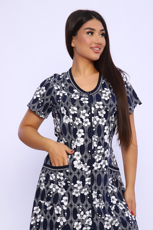 Халат женский на молнии с рукавом оригинальной расцветки выполнен из кулирки 100% хлопок. Горловина и карманы обработаны отделочным кантом, халат отлично подойдет для дома и отдыха.