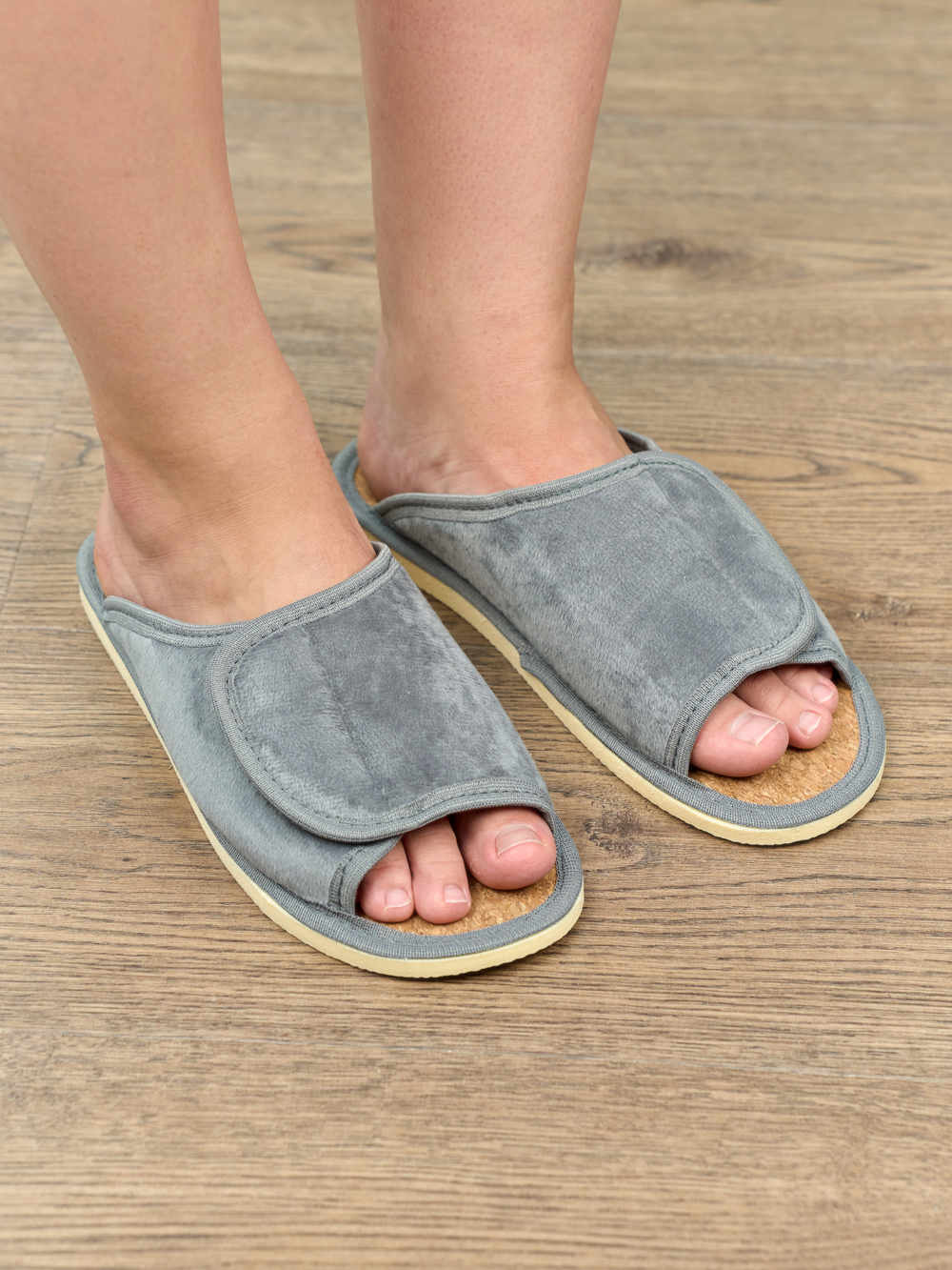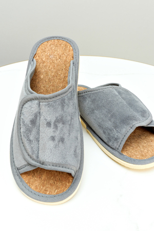 Легкие комнатные тапочки женские от бренда "Лепилов" прекрасно подойдут для ежедневного ношения дома и на даче в любое время года. Их можно предложить своим гостям, или взять с собой на отдых, в дорогу. А как приятно после тяжелого рабочего дня переобуться в тапочки с комфортной посадкой по ноге! Благодаря липучке они подходят на стопу с любой полнотой и подъёмом! Тапочки с открытым мыском не натирают ноги. Верхняя часть домашних тапок выполнена из качественного текстиля, который легко пропускает воздух. В таких тапочках нога не потеет и не скользит. Стелька выполнена из качественной пробки, благодаря которой их очень комфортно носить как с носком, так и на босу ногу! Они спасают от холодного и мокрого пола.  Подошва изготовлена из ЭВА, это легкий, упругий, эластичный и износостойкий материал. Все швы качественно обработаны производителем. Классическая модель подойдет для носки в любое время года: в осенний, весенний и летний, в зимний период, будет удобна в качестве домашних комнатных, дачных или рабочих. Широкий размерный ряд позволяет найти свою пару удобной обуви каждой женщине. Наслаждайтесь каждым моментом вместе с нами!
