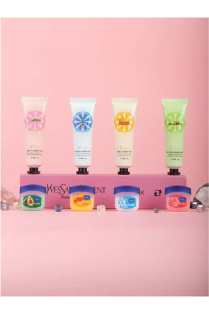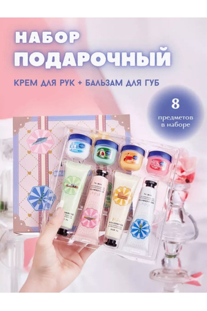 Подарочный набор 8 в 1. В наборе 4 крема для рук и 4 бальзама для губ на вазелиновой основе.