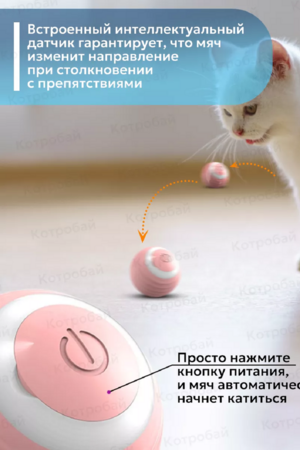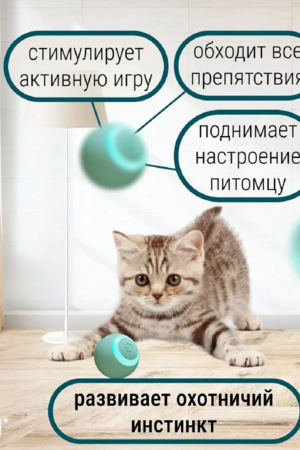 Интерактивный игровой мяч для вашего питомца - умное развлечение и веселье! Мяч легко вращается на 360 градусов по всему полу, создавая захватывающую яркую подсветку. Он выбрирует, кружится, прокатывается вокруг углов и убегает от вашего питомца, чтобы вызвать его охотничий инстинкт! Незабываемые игры ждут вашего питомца на ровных поверхностях, таких как ламинат, кафель, плитка и линолеум. К сожалению, на ковровых или неровных поверхностях мячик может застрять и не сможет убежать от вас. В комплекте с мячом идет кабель Type-C для быстрой зарядки, чтобы ваш питомец никогда не скучал. Зарядка игрушки - это так просто! Эта интерактивная игрушка сделана из мягкого силикона и прочного ABS-пластика. Она устойчива к царапинам, но не выдержит укусов. Поэтому она предназначена только для котят, кошек и собак мелких пород. В ночное время мячик работает бесшумно, чтобы не беспокоить сон ваших хозяев, пока ваш питомец бегает по дому за светящимся шариком. Этот развивающий аксессуар для домашнего питомца имеет два режима работы: обычный и интеллектуальный. Вы можете переключать их с помощью кнопки на мячике.