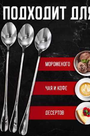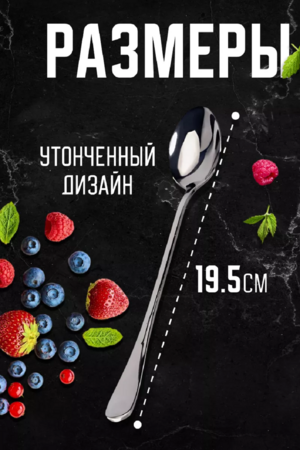 Ложки чайные из нержавеющей стали с удобной длинной ручкой 19,5см. Ложки отлично подойдут для десерта, высоких стаканов, мороженного и пр. Также десертные ложки удобны для вылавливания ягод из узких стаканов или мёда из банки. Все это делать гораздо удобней и приятней если у вас есть чайная ложка с удлиненной ручкой. Ложки чайные можно мыть в посудомоечной машине, атак же это отличный подарок для себя или близкого вам человека