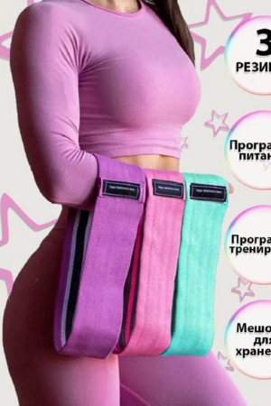 Тканевые резинки для спорта, фитнеса, гимнастики, растяжки. В наборе 3 тканевые ленты - розовый, бирюзовый и фиолетовый и нагрузки до 25 кг. Увеличенный размер (8х38) выгодно отличает их от большинства резинок на рынке, окружность 76 даёт возможность большей амплитуды упражнений. А усиленный двойной шов увеличивает прочность резинки для фитнеса. Они изготовлены из хлопка и полиэстера, поэтому их невозможно порвать. Мы не экономим на функциональности! Тканевые резинки намного мощнее, прочнее и удобнее. Ткань намного приятнее к телу, чем резина, за счет этого их комфортно использовать на голые ноги.