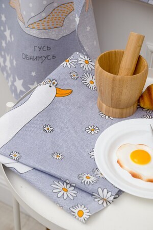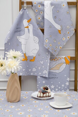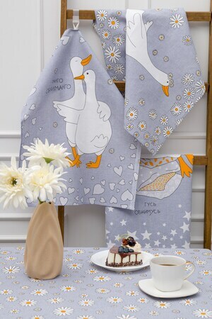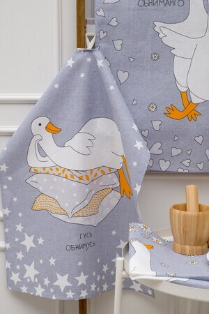 Набор из трех кухонных полотенец с милыми гусями отлично украсит любую кухни. Белые гуси с забавными надписями отлично гармонируют на сером фоне и подойдут к любому интерьеру. Размер полотенец 60*48, к каждому полотенцу пришита петелька, что делает их еще более удобными. Изделия хорошо впитывают влагу, быстро сохнут и не требуют особого ухода. Полотенца аккуратно сложены и упакованы по 3 шт. в прозрачный пакет. Такой набор может служить готовым подарком для близких и коллег на праздники такие как: 8 марта, день рождения, пасха, день учителя.