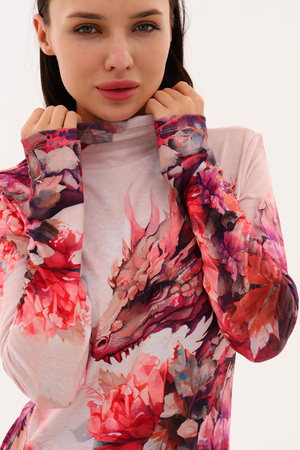Лонгслив Dragon от Emotion Day - стильный и комфортный выбор для женщин. Лонгслив выполнен в розовом цвете, который добавит свежести и оригинальности вашему повседневному образу. Абстрактный принт на ткани придает модели индивидуальность и уникальность. Лонгслив имеет полуприлегающий силуэт, что позволяет ему хорошо сидеть на фигуре. Средняя длина изделия обеспечивает комфорт и свободу движений. Качественный материал: лонгслив Dragon изготовлен из высококачественного материала - 94% полиэстер и 6% спандекс. Ткань джерси приятна на ощупь и обладает хорошей эластичностью.