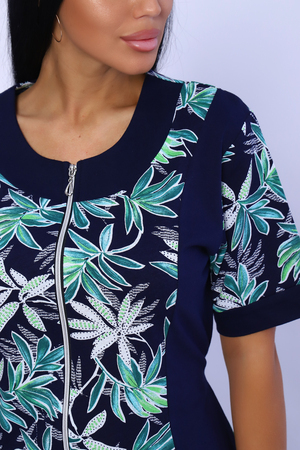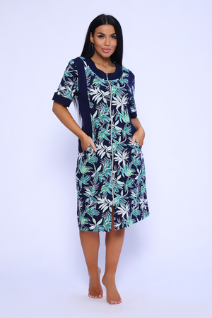 Удобный домашний женский халат из легкой хлопковой ткани создан для настоящих ценительниц качества и стиля! Это именно та домашняя одежда, в которой комфортно готовить еду, заниматься уборкой, стиркой и прочими бытовыми делами. Нежный дизайн халата, создающий летнее настроение, представляет собой комбинацию однотонной ткани и ткани с ярким цветочным рисунком, визуально делающий обладательницу стройнее. Декоративная линия кокетки плавно переходит в карман. Халат застегивается на молнию, поясок завязывается сзади. Короткий рукав позволяет носить халат в жаркое время года дома и на даче.