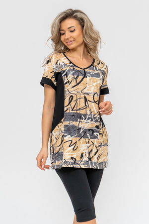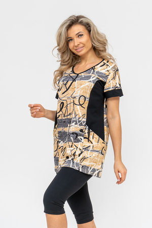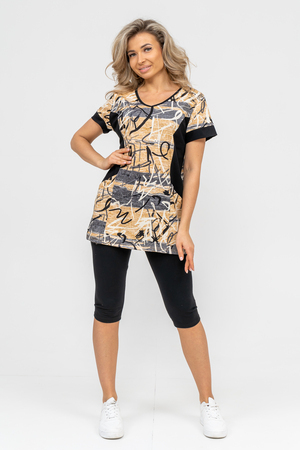 Женский костюм полуприлегающего силуэта состоит из туники и бриджей. 100% дышащий хлопок туники и эластичная вискоза бриджей несут в себе удобство при носке, гигроскопичность и износостойкость. V-образный вырез горловины придаёт изделию женственный вид. Для удобства туника имеет вместительные накладные карманы и втачные рукава с манжетами. Рельефы на полочке изделия создают идеальную посадку и безупречный внешний вид. Бриджи на резинке с высокой посадкой. В костюме такого плана Вы будете чувствовать себя комфортно как дома, так и на любимой даче. Эта двойка идеально подойдет для летнего отдыха на даче, на море или просто для девушек, которые хотят чувствовать себя уютно и комфортно дома. Летний женский костюм подходит для поездок и путешествий, загородного отдыха на природе, а также для получения лечения в больнице или санатории. Повседневное хлопковое изделие с бриджами - отличная идея для подарка любимой жене, маме, сестре или подруге на день рождения, 8 Марта или по любому другому приятному поводу. Рекомендация: для того чтобы продлить яркую жизнь