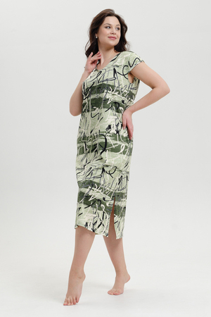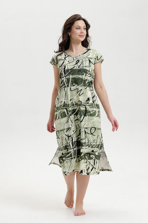 Платье женское удлиненное с легким рукавом - крылышком выполнено из кулирки 100% хлопок оригинальной расцветки. По бокам глубокие разрезы, карманы в швах, горловина обработана узким кантом. Платье элегантно подчеркивает фигуру, длина и разрезы придают стройность, оно отлично подойдет для прогулок и отдыха.