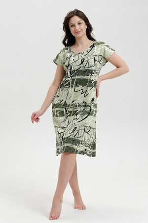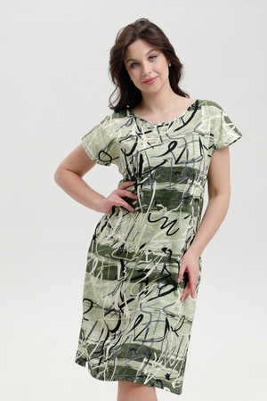 Платье женское средней длины выполнено из кулирки 100% хлопок оригинальной расцветки. Рукав спущенный, в боках карманы, горловина обработана узким кантом.