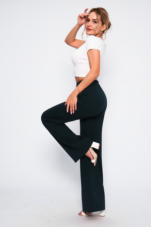 Брюки трубы это современная классика. Модные штаны палаццо идеальны для повседневной носки на работу и в школу, офис, деловые встречи, для отдыха вечером и вечерних прогулок, для торжественных мероприятий и праздников, для занятия спортом, для отдыха на природе, для поездок на машине, для прогулок с детьми, для выгула собак и домашних животных, для активного образа жизни поскольку они не сковывают свободу движений. Они выполнены из трикотажной эластичной ткани футер двунитка петля, не теряют форму после многочисленных стирок, не скатываются за счет полиэстра и лайкры в составе и элегантно садятся на любую фигуру, стройнят, визуально удлиняют ноги. Стильные, модные, современные в меру широкие брюки палаццо имеют широкий размерный ряд, что включает в себя большие размеры.