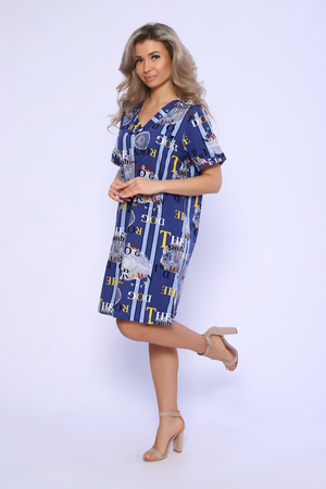 Туника полуприлегающего силуэта с короткими рукавами на манжетах. Полочка с отрезной кокеткой и V - образным вырезом горловины. В боковых швах карманы и небольшие разрезы.