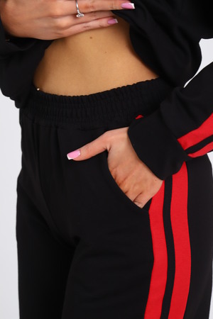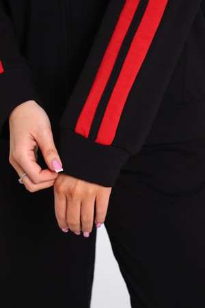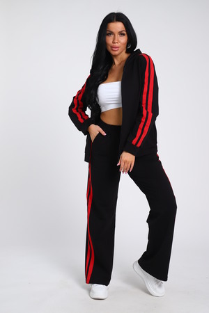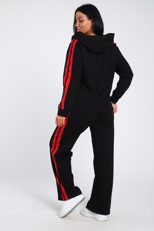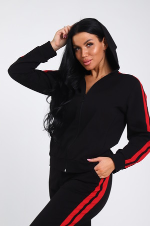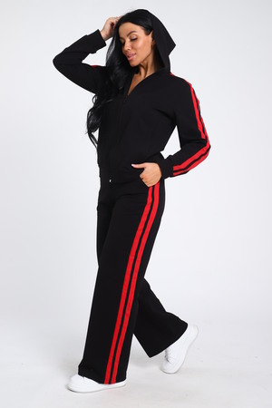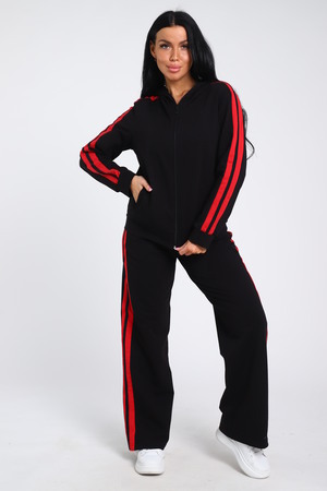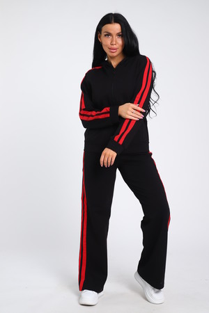 Время диктует новые тенденции в моде, благодаря чему появляется много новых моделей костюмов с брюками, отличающихся повышенной комфортностью и стилем. Модные брючки – практичная универсальная вещь, открывающая широкое поле для экспериментов. Беспроигрышный вариант дополнить образ бомбером. Представляем вашему вниманию модель с контрастными вертикальными вставками по всей длине брюк и по рукавам бомбера, на которых расположен одинарный лампас. Брюки с боковыми карманами, поясом на резинке выполнены из трикотажного полотна, которое сохранит свой первоначальный вид на долгое время. Бомбер с капюшоном, в швах рельефа расположены карманы. Модель представлена широким размерным рядом с 42р по 64р.