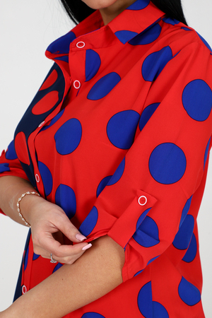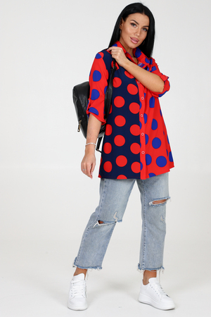 Наша туника - это верхняя одежда с особым рисунком в виде гороха, а также оригинальным сочетанием двух расцветок. Туника не только стильна, но и комфортна. Она обладает удобными рукавами "три четверти подобранными на паты", что придает ей еще более элегантный вид. Модель также дополнена рубашечным воротником, который придает тунике изысканности. Мы предлагаем Вам купить эту уникальную тунику и погрузиться в мир моды и комфорта. Наш товар соответствует самым высоким стандартам качества, поэтому Вы можете быть уверены, что она прослужит Вам долгое время. Женская туника на пуговицах, изготовленная из ткани Прадо, с рисунком гороха и оригинальным сочетанием двух расцветок, станет Вашим незаменимым атрибутом стиля и элегантности. Не упустите возможность приобрести эту модель уже сегодня!