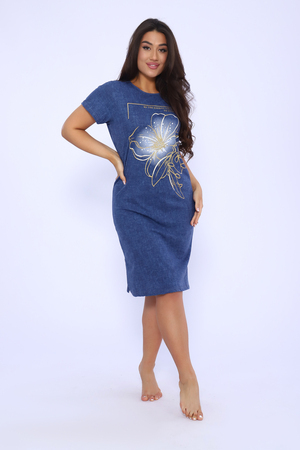 Платье женское укороченное с оригинальным принтом спереди выполнено из кулирки 100% хлопок. Короткий рукав, горловина обработана узким кантом, по бокам разрезы. Платье отлично подойдет как для дома. Так и для прогулок и отдыха.