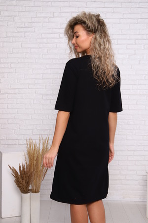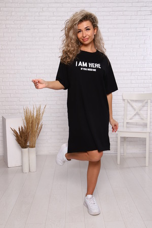 Черная базовая туника до колена, увеличенная пройма и слегка спущенная линия плеча, сядет на любую фигуру. Рукава и низ изделия подгиб, горловина - кант, цельнокроеная спинка - без шва на спине! В такой футболке легко выглядеть стильно как дома, так и на прогулке, на берегу моря и в парке. Платье в форме удлиненной футболки - закрепившийся тренд теплых сезонов. 100% хлопок дышит, пропускает воздух и нежно касается кожи. Футболка отлично подойдет для дома в холодный сезон, поможет создать образ спортивной одежды. Отлично подойдет беременным и кормящим девушкам. За счет кроя длинной футболки туника красиво сядет на девушку любой фигуры, скроет недостатки и подчеркнет достоинства. Трикотажное платье удобное и комфортное, натуральная ткань слегка тянущаяся. Платье туника удлиненная с коротким рукавом, можно использовать как летнее, домашнее, пляжное, повседневное. Спортивное платье футболка комфортное подойдет для прогулки с ребенком. Наше нарядное платье туника трикотажное легко заменяет сарафан в жаркую погоду, а так же халат для дома. Свободного силуэта, имеет декоративный принт, что придает изделию оригинальность. Наших клиентов можем побаловать цветовой палитрой. Удлиненная футболка платье  отличный подарок подруге, маме, любимой жене, девушке, женщине, на девочку подростка, на юбилей, день рождение, Новый год, на 8 марта.