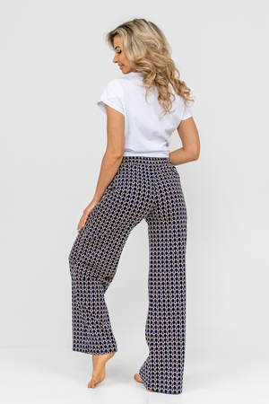 Женские стильные брюки - трубы выполнены из нового трендового 100% хлопчатобумажного полотна. Высокая посадка, вместительные боковые карманы, удобный и качественно обработанный на специальной машине пояс позволит Вам чувствовать себя комфортно. Широкие трубы смотрятся очень элегантно и женственно. Они стали трендом сезона, поскольку подчёркивают стройность и привлекательность ног, а прямой крой скрывает недостатки фигуры. При помощи такой модели можно сделать пропорции тела более сбалансированными. Женские брюки-трубы отличный предмет гардероба для любой представительницы прекрасного пола. В модели такого плана Вы будете чувствовать себя комфортно дома, на отдыхе, на даче и на море. Можете приобрести изделие в качестве подарка на любой праздник: день рождения, 8 марта, 14 февраля и просто так для души. Брюки можно купить с футболкой - костюм 36738.