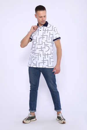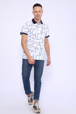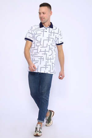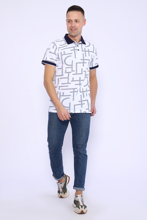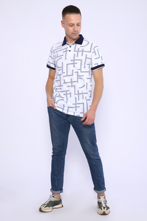 Футболка-поло мужская выполнена из ткани пике хорошего качества 100% хлопок. Поло оригинальной расцветки, с контрастными вязаными манжетами и воротником, плпнка на пуговицах, по бокам разрезы. Футболка очень комфортная, удобная, не садится после стирки, идеально подойдет для дома и отдыха.