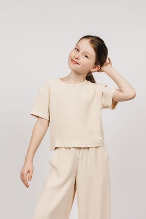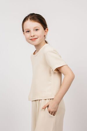 Блузка укороченная для девочки выполнена из качественной ткани «Сингапур», свободный прямой крой. Блузка сочетает в себе простоту и элегантность, подходит как для повседневной носки, так и для создания праздничного образа. Ткань приятна на ощупь, легкая и прочная. Отлично сочетается в шортами арт. 0210, брюками арт. 0110. Блузка проста в уходе, не склонна к заломам. Материал износоустойчив, не линяет, ткань сохнет достаточно быстро, не требует утюжки - лёгкие и невесомые, не будут стеснять движения. Уход за изделием: бережная стирка до 30 градусов; нельзя отбеливать; деликатный отжим; гладить с изнанки. Возможна усадка.