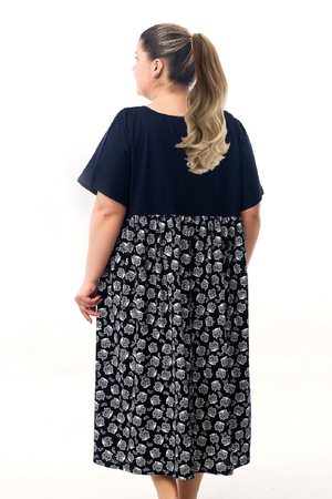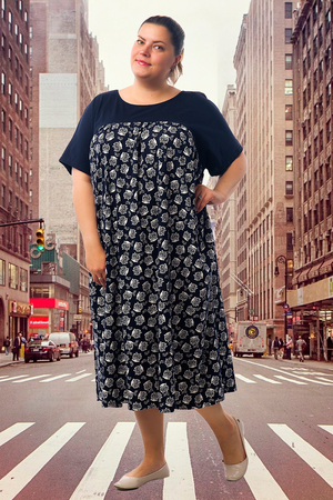 Платье с кокеткой на сборке. Цельнокроеный спущенный рукав