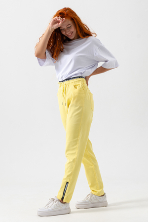 Женские брюки из джинсовой ткани. Отличное решение для лета и хорошего настроения. Модель может прийти без задних карманов.