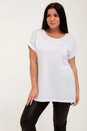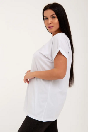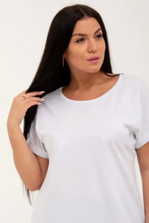 Женская футболка без рисунка с отворотами на рукавах, хлопок 100%, Арт. 561