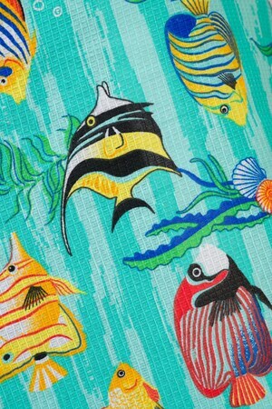 Его зелено-голубой цвет приятно гармонирует с морской тематикой и создает атмосферу спокойствия и уюта. Помимо использования на пляже, вы также можете использовать его как пляжный коврик для отдыха на песке.