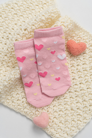 Нежные носочки для девушек и женщин. По всему носочку узоры из сердечек. В комплекте 2 пары
