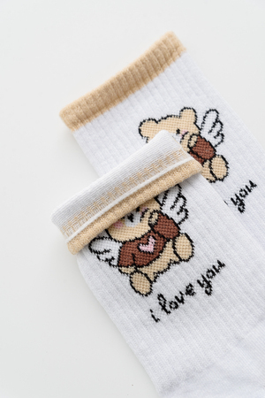 Нежные носочки для девушек. Высокая резинка, на резинке изображение мишки. В комплекте 1 пара.