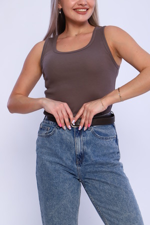 Майка женская из кашкорсе. Пройма и горловина майки обработаны окантовкой, низ подогнут на плоскошовной машине. Идеальный вариант для повседневной носки.