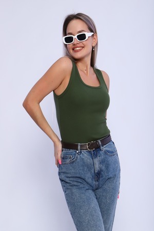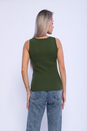 Майка женская из кашкорсе. Пройма и горловина майки обработаны окантовкой, низ подогнут на плоскошовной машине. Идеальный вариант для повседневной носки.