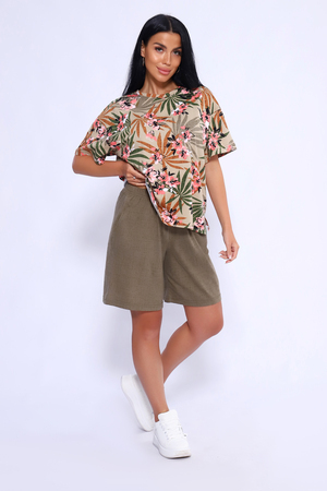 Женский домашний костюм-двойка фасона оверсайз - это стильный и очень уютный вариант, который подойдет всем без исключения. Он отлично сядет на любой тип фигуры и рост, благодаря своему свободному крою. Костюм изготовлен из высококачественного материала - кулирка (100% хлопок), который не только приятен на ощупь, но и обеспечивает комфорт во время носки благодаря своей хорошей воздухопроницаемости. Модный летний костюмчик имеет свободный крой, который не стесняет движений. Он состоит из футболки и шорт. Футболка со спущенной линией плеча и коротким рукавом, горловина  круглая. Широкие шорты с эластичным поясом на резинке. Этот костюм-двойка - отличный выбор для домашнего отдыха или для летних прогулок. Он не только стильный, но и очень удобный. Так что, если вы ищете комфортный и модный вариант для своего гардероба, то этот костюм-двойка - именно то, что вам нужно!