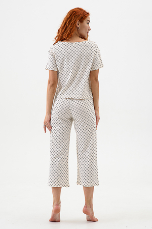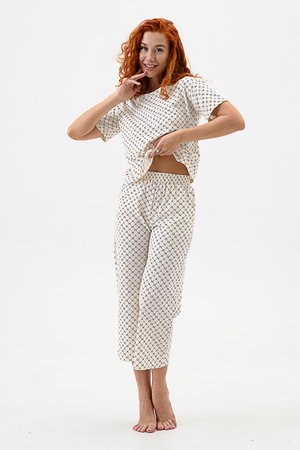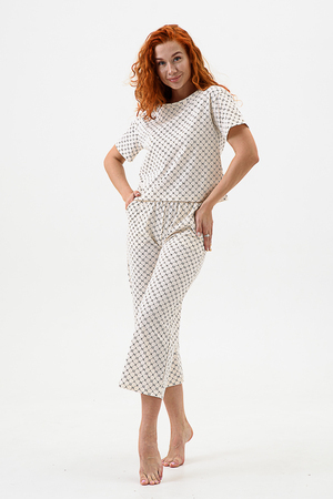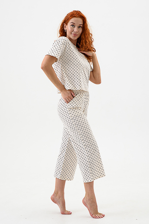 Домашний комплект с брюками - кюлотами и футболкой. Брюки с карманами. Длина 7/8. Футболка с коротким рукавом прямого силуэта.