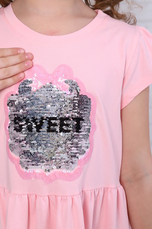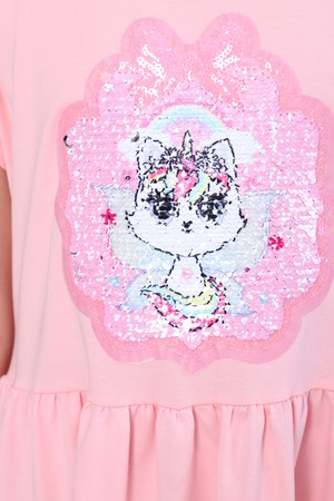Это красивое и яркое платье для девочки обязательно оценят маленькие модницы. Модель декорирована нашивкой с пайетками, которые меняют цвет одним движением руки и создают веселое настроение. Идеально подходит для повседневной носки дома и в детский сад, также для летних прогулок, для похода в гости или на праздник. Данная модель сшита из качественного трикотажа. Для сохранения первоначальных свойств изделия, важно соблюдать рекомендации по уходу. Для выбора правильного размера необходимо определить параметры: обхват груди, длина изделия, длина рукава и рост.
