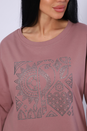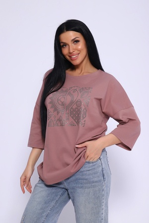 Туника свободного кроя из мягкого, натурального хлопка подарит ощущение комфорта и уюта. Оригинальный принт с использованием глиттера и техники объёмной печати украшает модель, придавая ей изысканный вид. Обработка деталей вкруговую с закрепкой, рукав длиной 3/4, горловина втачная из основной ткани. Большие размеры!