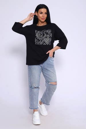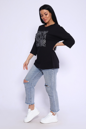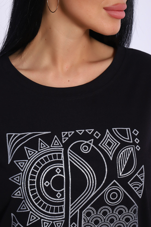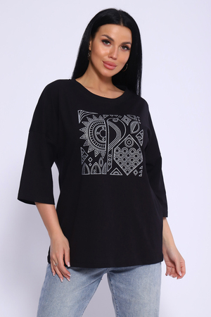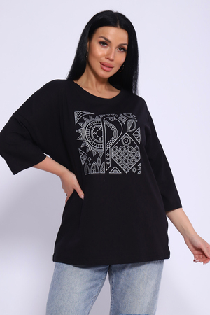 Туника свободного кроя из мягкого, натурального хлопка подарит ощущение комфорта и уюта. Оригинальный принт с использованием глиттера и техники объёмной печати украшает модель, придавая ей изысканный вид. Обработка деталей вкруговую с закрепкой, рукав длиной 3/4, горловина втачная из основной ткани. Большие размеры!