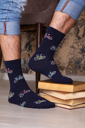 Мужские носки с высоким паголенком. По всему носку вывязаны велосипеды. В упаковке 6 пар