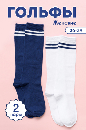 Классические женские гольфы, сверху узор из двух полос. В комплекте 2 пары.