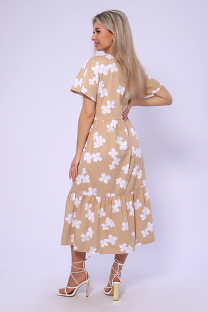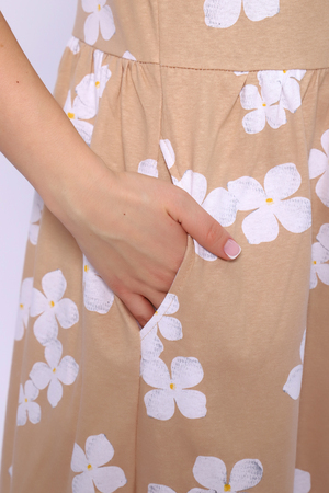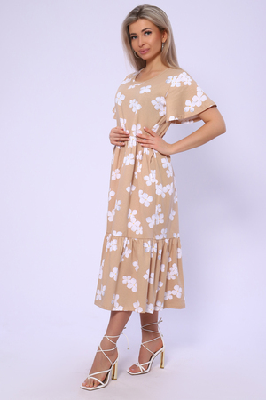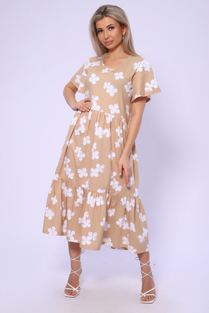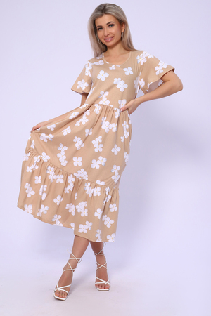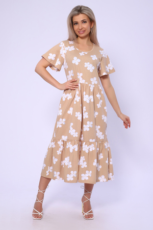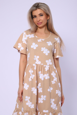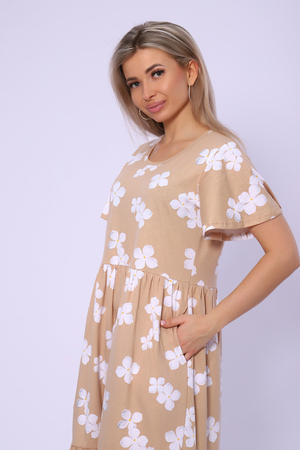 Платье свободного кроя с короткими рукавами - крылышками. Юбка двухъярусная на сборке. Карманы в боковых швах.