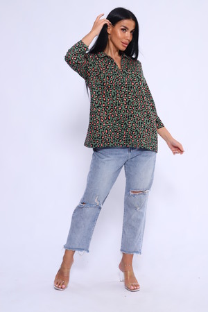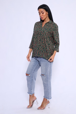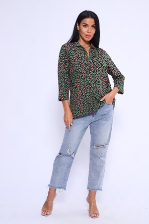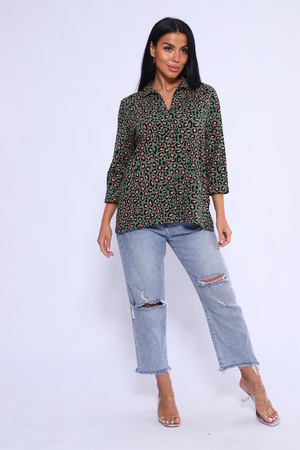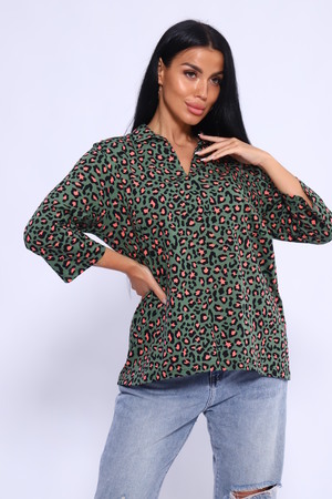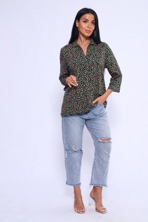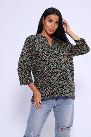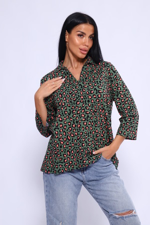 Блузка женская из кулирки. Блузка свободного покроя. Рукав втачной 3/4. Блуза с воротником. Низ изделия фигурный.