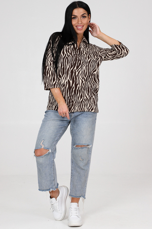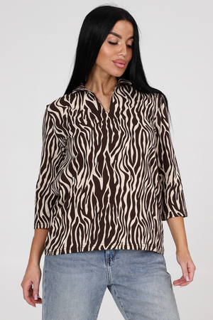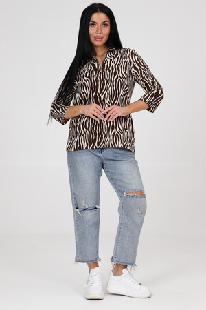 Блузка женская из кулирки. Блузка свободного покроя. Рукав втачной 3/4. Блуза с воротником. Низ изделия фигурный.