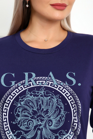 Пижама женская домашняя состоит из туники и брюк. Туника свободная, длиной до линии бедер, плечо спущенное, рукав втачной длинный. Горловина с обтачкой. На середине переда оригинальный принт. Брюки длинные, свободные без карманов. Пояс на резинке.