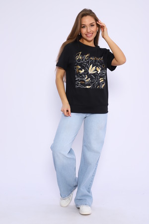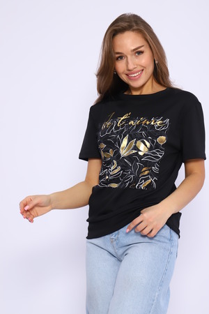 Футболка классического фасона, прямого кроя, с коротким рукавом и округлым вырезом. Декорирована принтом. Универсальная модель футболки отлично подойдет для любого образа и станет необходимой вещью в вашем гардеробе. Ткань 100% полиэстер