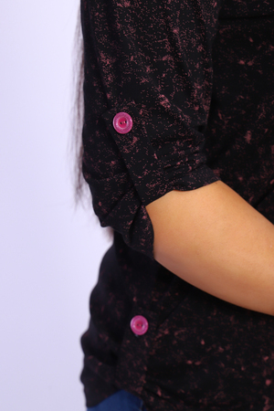 Женская туника с рукавом 3/4 с фигурным вырезом с окантовкой из основной ткани. Длина рукава регулируется патой на пуговице. Такая же регулировка находится по бокам изделия. Можно носить как с опущенной патой, так и собранной на декоративную пуговицу. Низ изделия закруглен, перед немного укорочен. Блузка отлично подойдет как для уличного, так и домашнего ношения. Прекрасно сочетается с джинсами на прогулку, с юбками - миди в офис, с домашними брюками для дома и дачи. Большой ассортимент приятных расцветок на любой вкус. Туника прекрасно смотрится на беременных, так как выполнена в свободном стиле. Отличный подарок любимым женщинам!