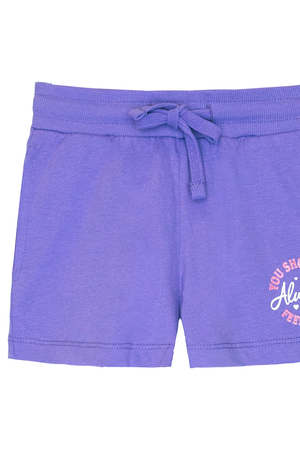 Модные и удобные трикотажные шортики - отличный выбор для девочек на летний сезон и для занятий спортом. По поясу шорт вставлен плоский утягивающий шнурок в цвет шорт, низ шнурка подвернут и застрочен. На левой передней половинке шорт принт шелкография с глиттером. Надпись переводится как "Ты всегда должна чувствовать себя красивой". Эти шортики для девочек идеально подходят для повседневных летних прогулок.